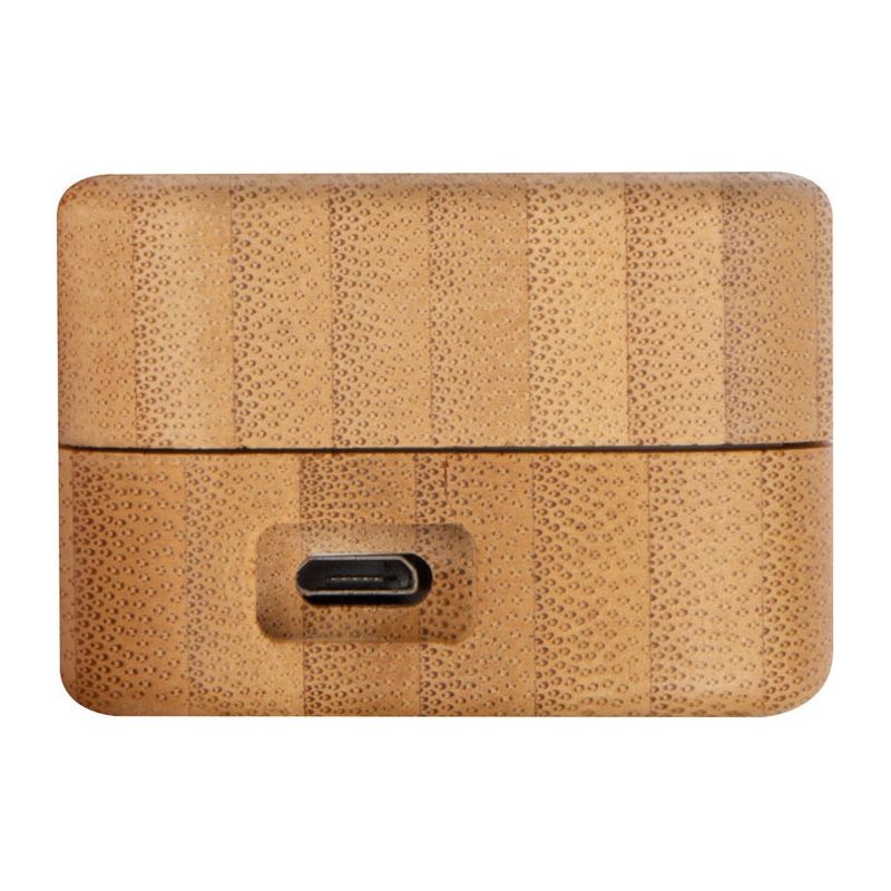Ергономични Bluetooth 5.0 слушалки за поставяне в ушите с индикатор за зареждане в USB станция за зареждане, която служи и като опаковка. Радиообхват до 10 метра, време за зареждане прибл. 1 час, време на работа 2-3 часа и 300 mAh батерия.