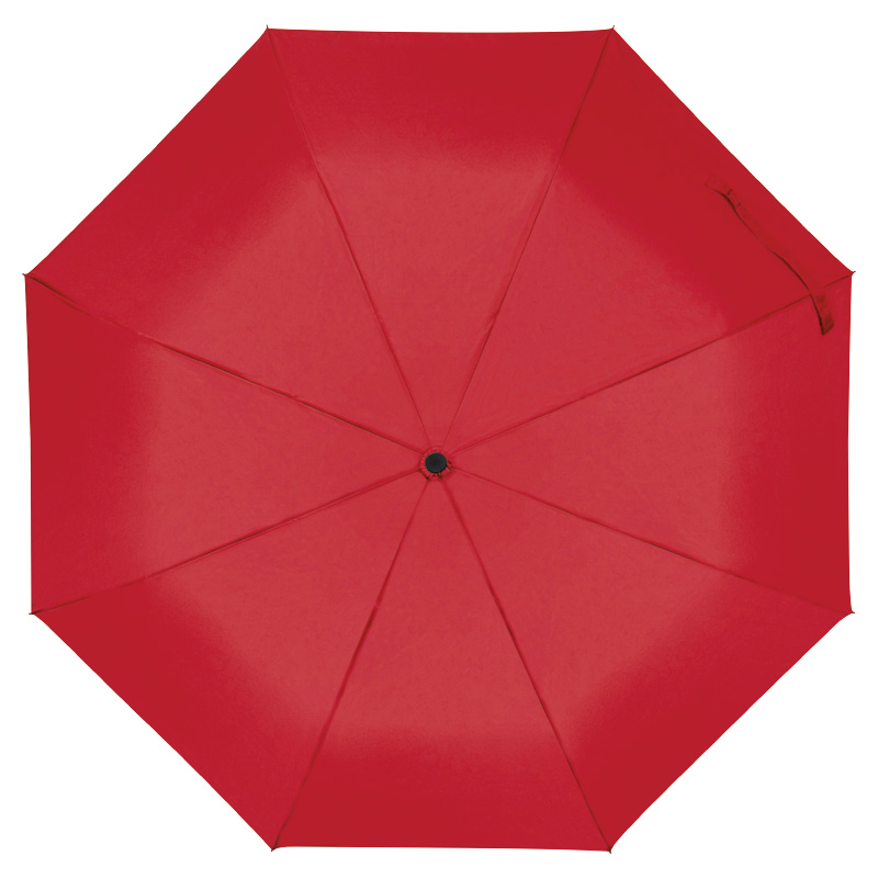 Автоматичен джобен чадър с рамка от фибростъкло, покритие от рециклирани PET бутилки, дървена дръжка и каишка за китката.