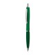 Тънка пластмасова химикалка със син пластмасов пълнител за писане и гумирана зона за захващане.