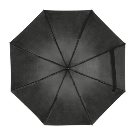 Малък и удобен, така че можете да го вземете навсякъде. Удобен сгъваем чадър с метална телескопична щанга и сенник от 170T полиестер, черна пластмасова дръжка и примка за ръка.