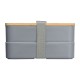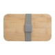 Хубав комплект кутия за обяд, изработена от полипропилен (без бисфенол А, вместимост 600 ml всяка) с бамбуков капак. Комплектът се състои от две отделни кутии, разделител за отделна употреба, прибори (нож, вилица и лъжица) в долния капак и ластик за затваряне на комплекта.