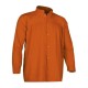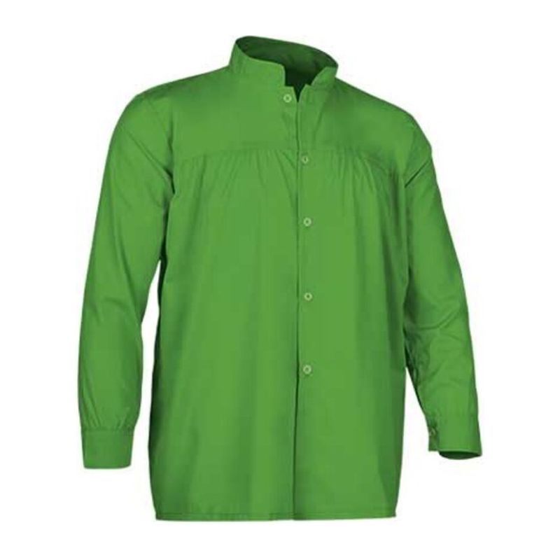 65% полиестер, 35% памук. 120 grs/m2 плат поплин. Кръгла лента за врат. Закопчаване отпред с копчета. Дълъг ръкав с маншети с копчета. 40 броя в кутия: 1 размер, 1 цвят. Индивидуална чанта.