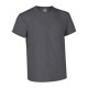 100% ring spun cotton. White melange: 85% cotton, 15% natural viscose. Grey melange: 98% cotton, 2% natural viscose. 165 grs/m2 single jersey. Ribbed round neck. Shoulder to shoulder reinforcement. Double stitching on neck, bottom and sleeves. 100 u…
