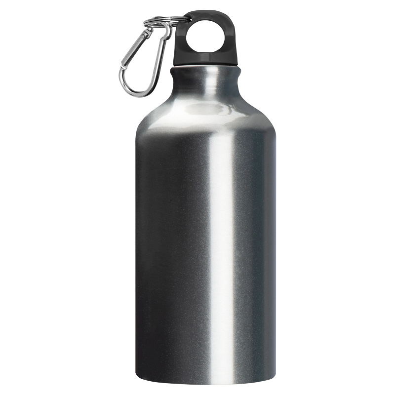 Еднослойна алуминиева бутилка за пиене с карабинер за закачане. Вместимост 500 ml.