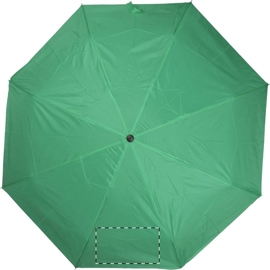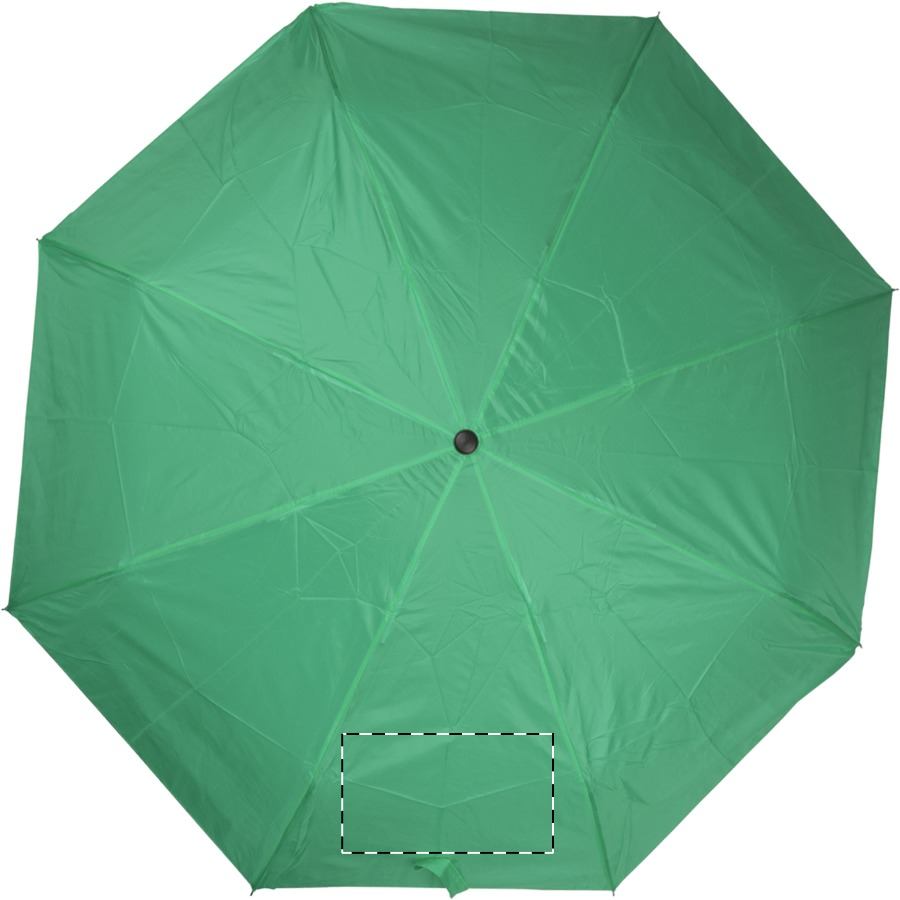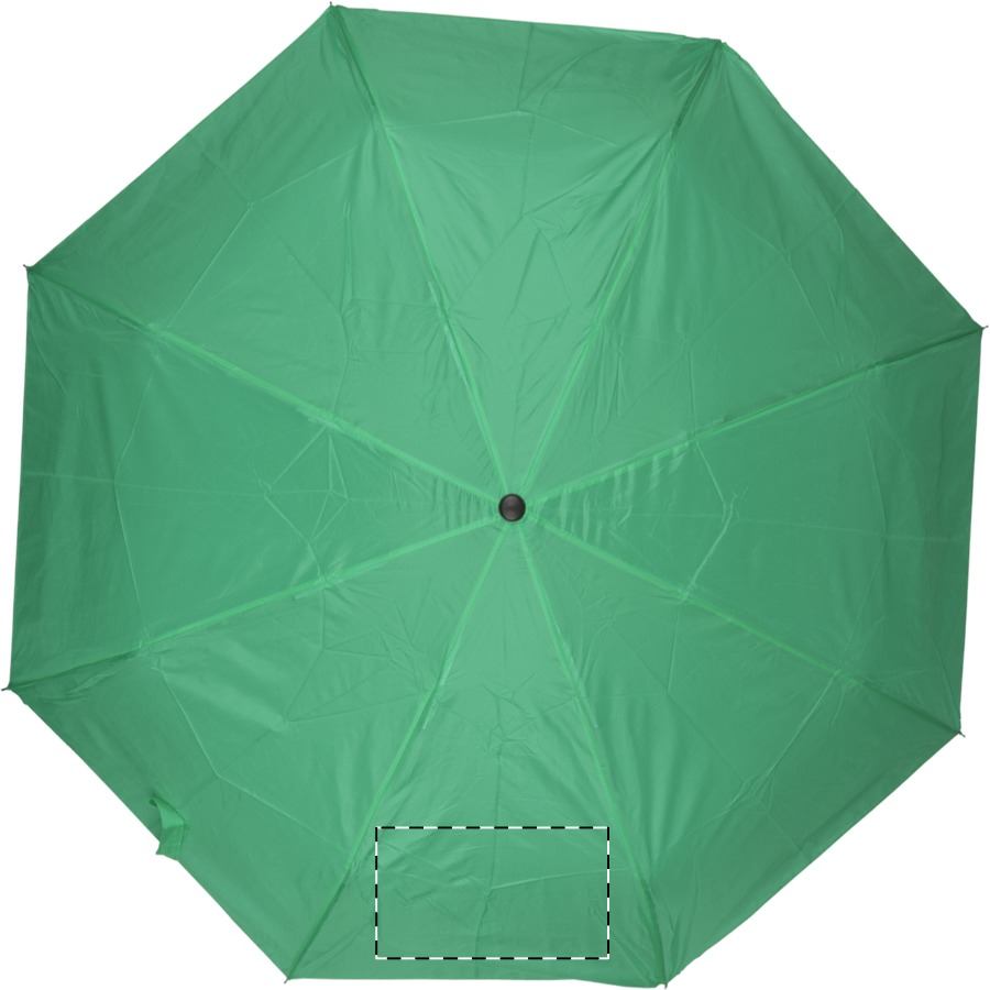 Напълно автоматичен (отворен/затворен), ветроустойчив сгъваем чадър с 8 панела. С метална дръжка, рамка от метал/фибростъкло и пластмасова дръжка. В торбичка в същия цвят. 190T полиестер.
