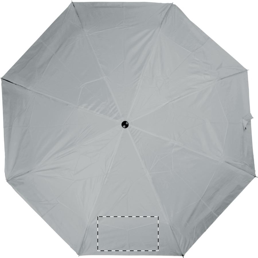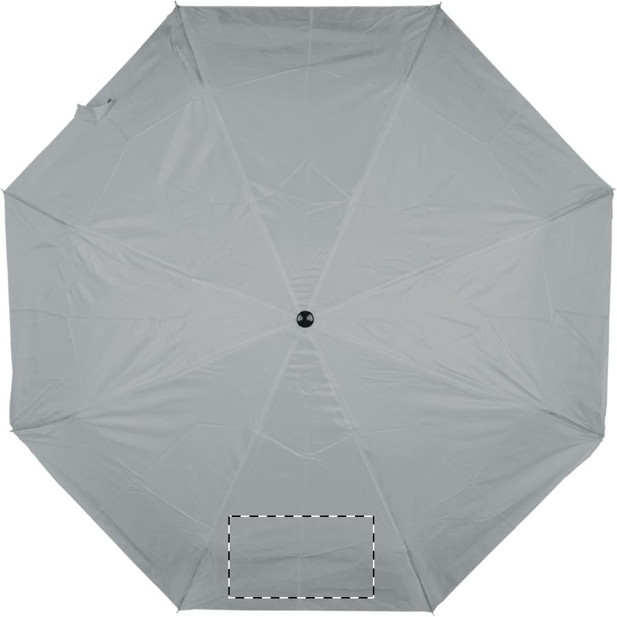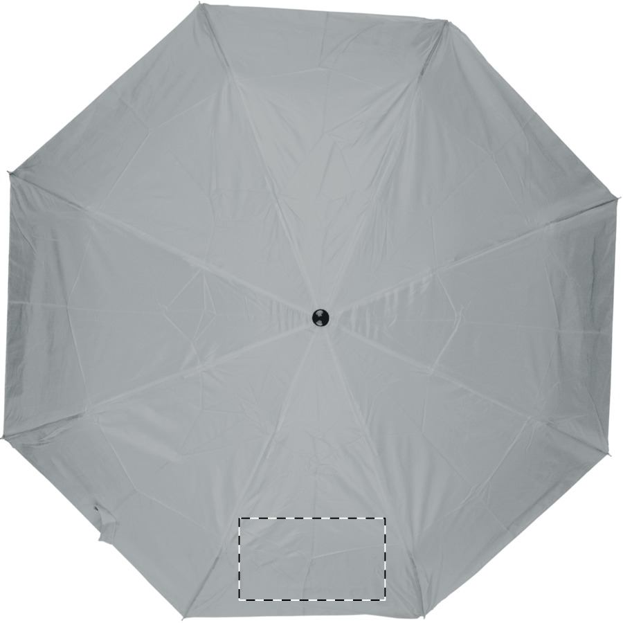 Напълно автоматичен (отворен/затворен), ветроустойчив сгъваем чадър с 8 панела. С метална дръжка, рамка от метал/фибростъкло и пластмасова дръжка. В торбичка в същия цвят. 190T полиестер.