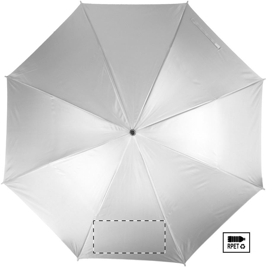 Автоматичен чадър с 8 панела, метална рамка, дървена дръжка, дръжка и накрайници. 190T RPET понге. С отличителен етикет RPET.