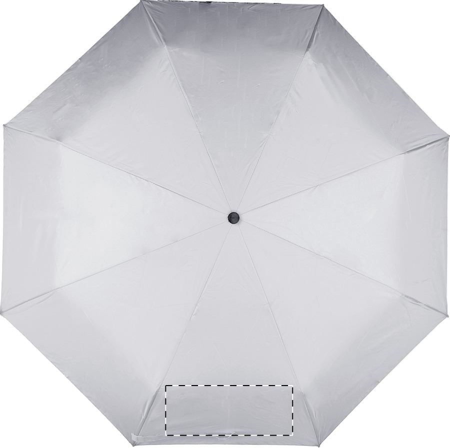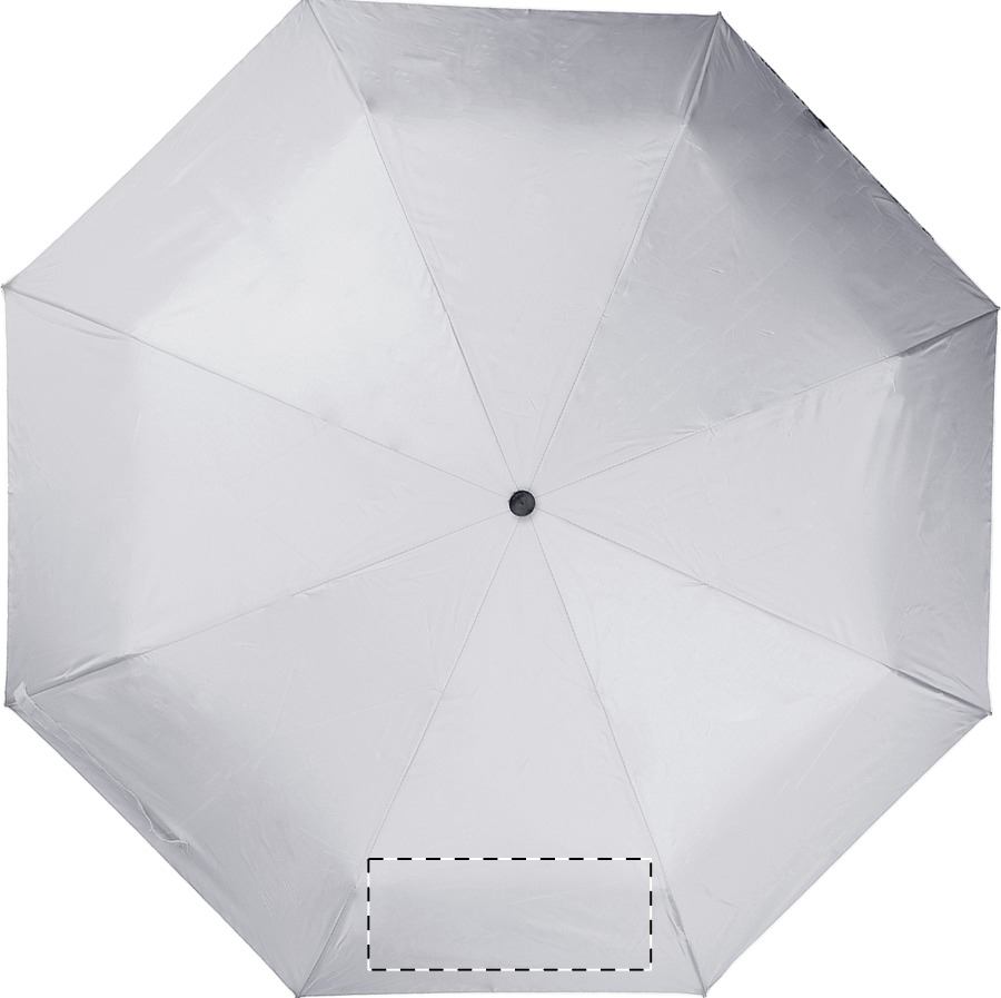 Ръчен, ветроустойчив сгъваем чадър с 8 панела, ребра от фибростъкло, метална дръжка и рамка. С дръжка с примка, която може да се прикрепи към лентата за чанта. 190T понге.