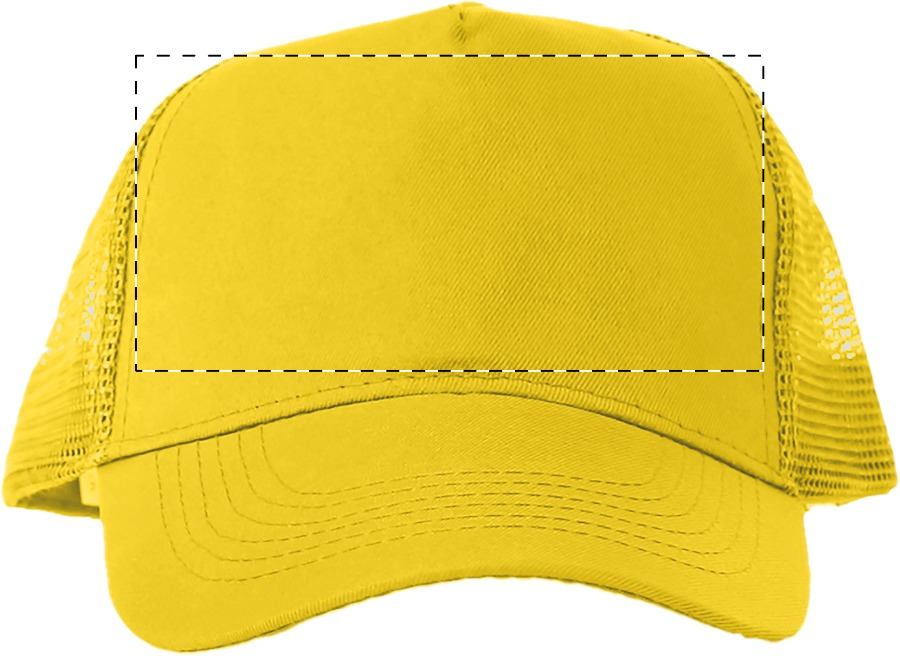 Бейзболна шапка с 5 панела с мрежест гръб и пластмасова лента за регулиране на размера, полиестер.