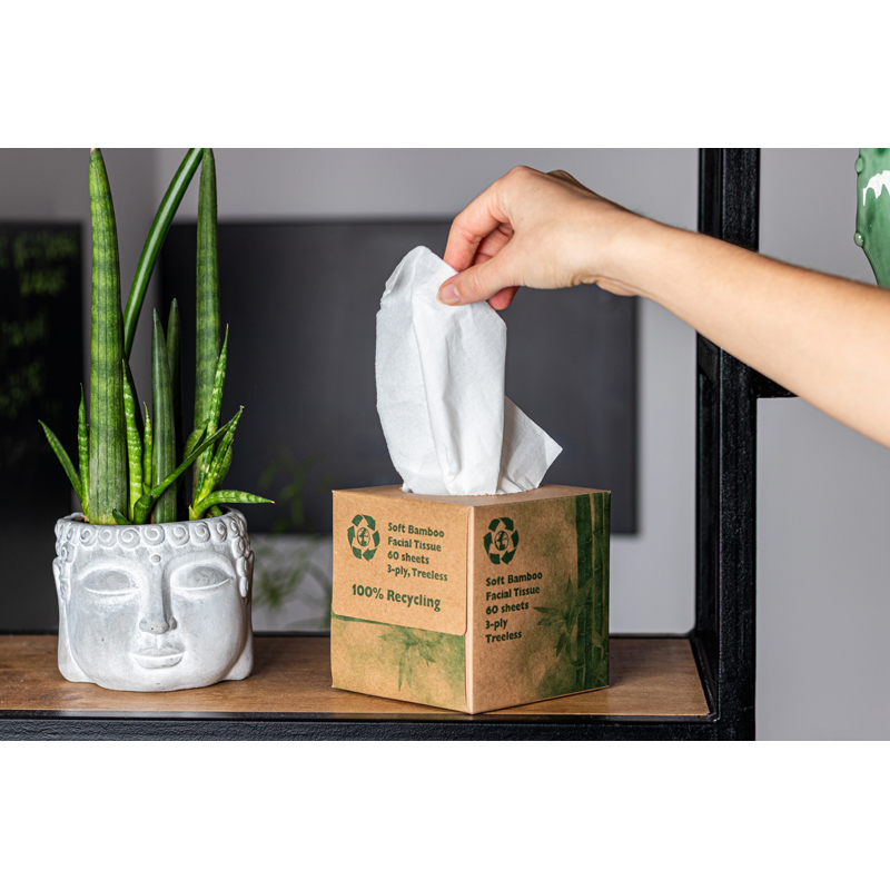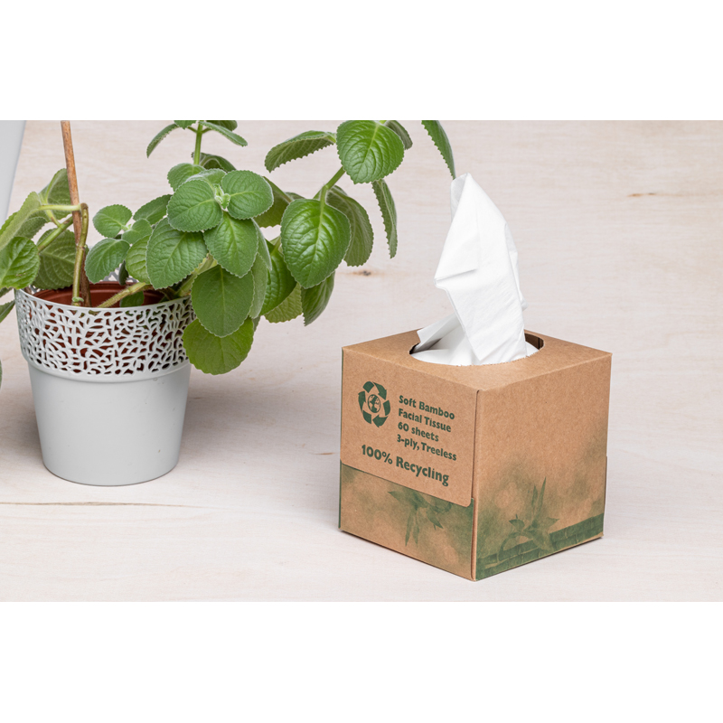 Cutie cu servetele 60 de bucati in 3 straturi, marime servetele 20x19 cm, fabricate din hartie de bambus! Cutie fabricata din hartie reciclata.