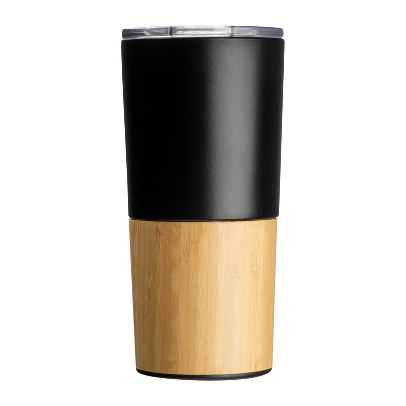 Stylish thermo mug (double-walled, vacuum) in a mix of materials, stainless steel and bamboo. Capacity 500 ml.