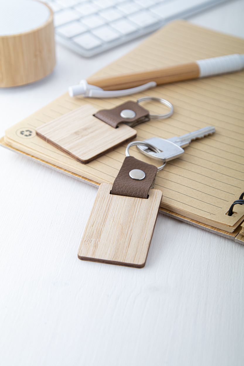 | Description | Bamboo plywood and PU leather keyring with metal ring. |