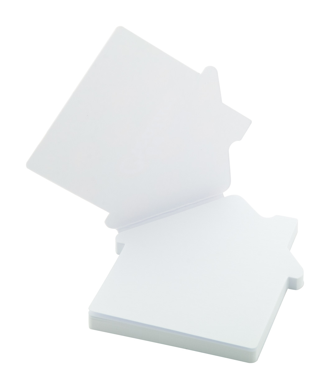 | Description | Custom made, paper covered house shaped sticky notepad. Includes 50 sheets of recycled paper sticky notes. Price includes full colour printed outside cover. MOQ: 100 pcs. |