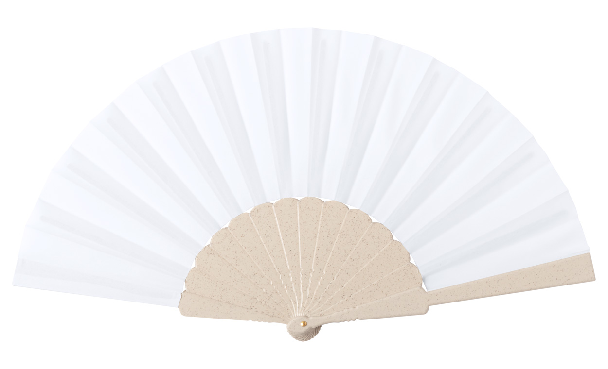 | Description | RPET polyester hand fan with bamboo fibre plastic ribs. In kraft paper box. |