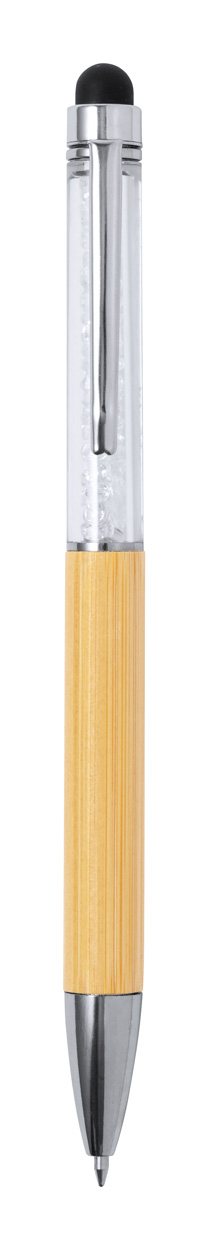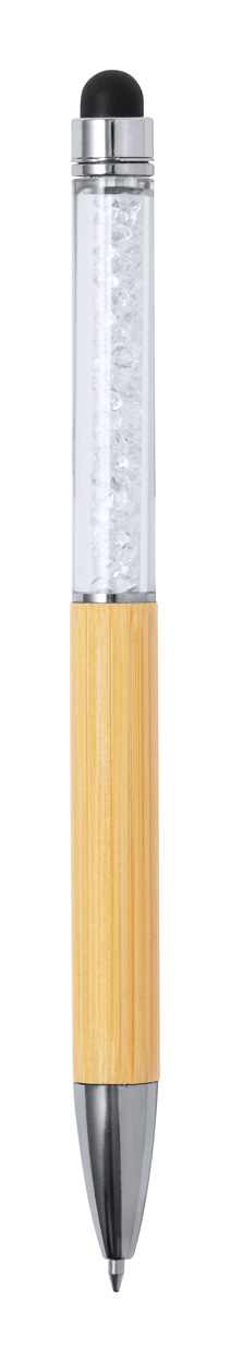 | Description | Bamboo twist ballpoint and touch screen pen with transparent upper barrel with crystals. With blue refill. |