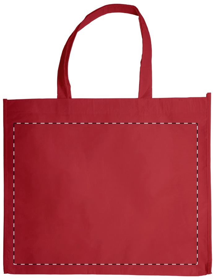 | Описание | Laminated RPET shopping bag with gusset and medium handles, RPET polyester 105 g/m². With distinctive RPET label. |