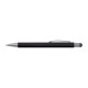 Метална химикалка със стилус за работа със смартфони и таблети, цветна гумирана повърхност и син пълнител за писане.