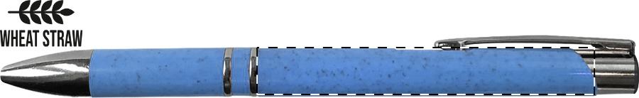 Пластмасова химикалка от екологична пшенична сламка с метални части. Със син пълнител.