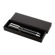 Комплект химикалки от рециклиран алуминий с ролка и химикал в черна хартиена подаръчна кутия. Със син пълнител.