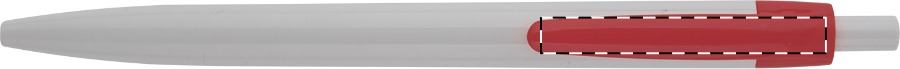 | Описание | Plastic ballpoint pen with white barrel and coloured clip. With blue refill. |