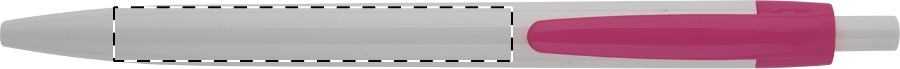 | Описание | Plastic ballpoint pen with white barrel and coloured clip. With blue refill. |