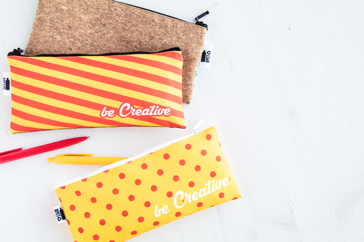 Изработен по поръчка несесерс цип от 600D RPET полиестер. С изцяло сублимирани отпечатани графики и отличителен RPET етикет. MOQ: 50 бр.
