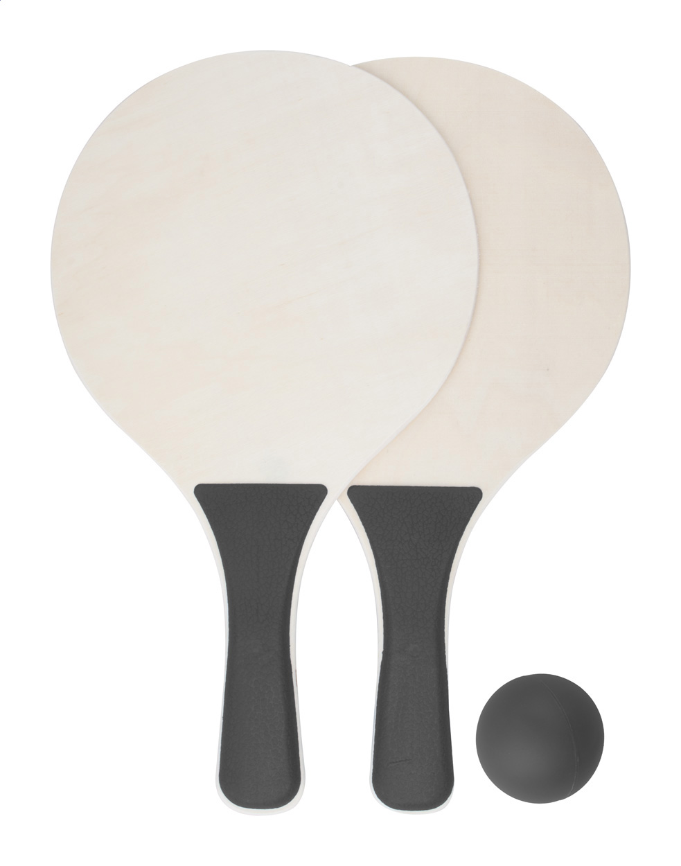 | Описание | Beach tennis with 2 rackets and one ball, made of wood and plastic. |