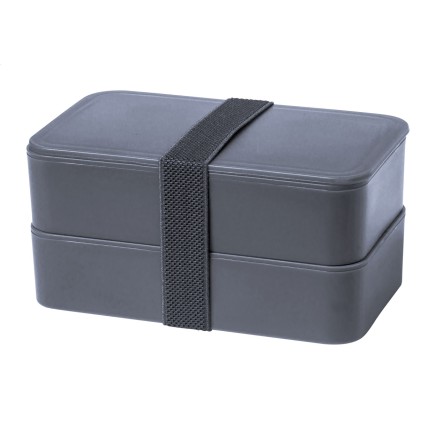 | Описание | Lunch box in PP plastic with cutlery set (fork, spoon and knife) and elastic strap. With 2 compartments of 700 ml capacity each. |